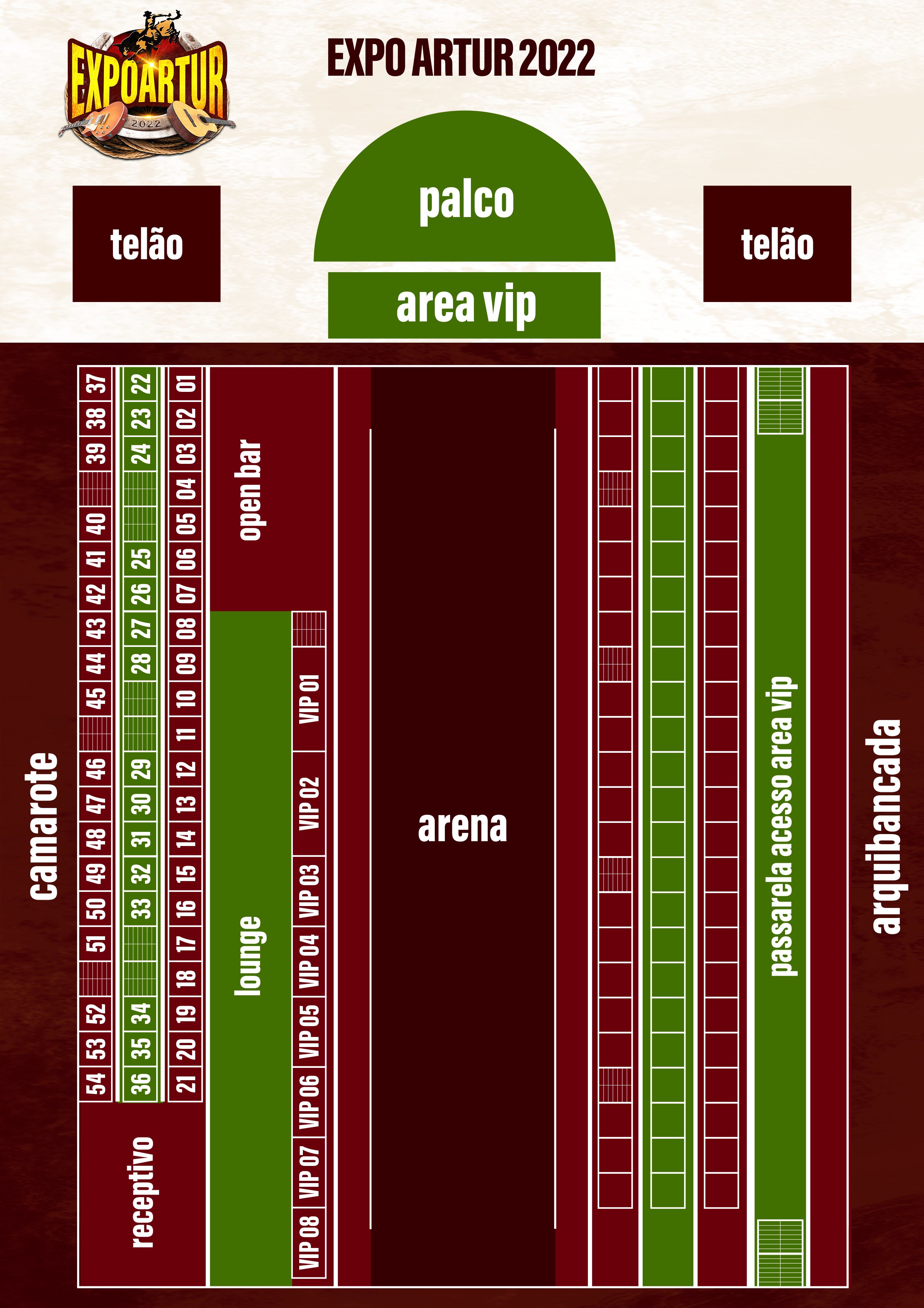 - Área Vip (frente ao palco): Individual e Pacote